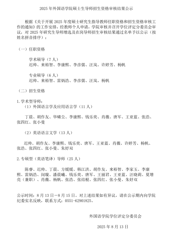 2025年williamhill中国官方网站硕士生导师招生资格审核结果公示