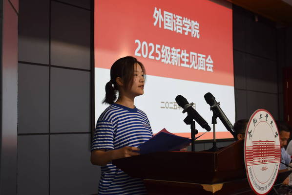 2022级学生周熠菲以“学业与成长”为主题,通过“单词背后的文化密码”“演讲台上的自信时刻”等实例,生动展现外语学习的魅力,建议新生“多听、多读、多尝试”,勇于突破自我;2025级新生代表孟程真表达了对专业的热爱与对未来大学生活的憧憬,承诺将珍惜时光、脚踏实地,努力成长为有担当、有情怀的外语人,以语言为桥,向世界讲述中国故事。