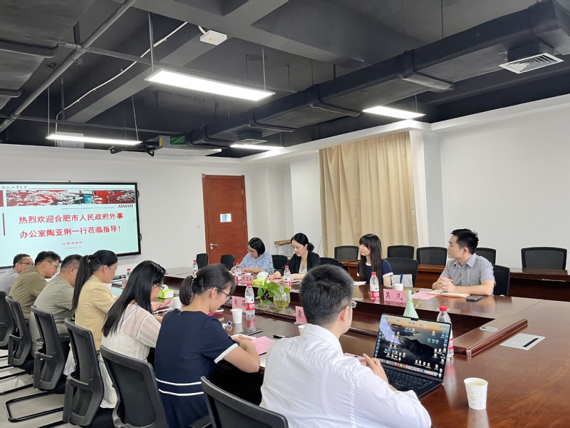 2025年9月11日下午,合肥市人民政府外事办公室副主任陶亚俐、礼宾处处长杜欢、机关党总支专职副书记侍洋、秘书处副处长吴凡一行来williamhill官网调研交流。座谈会由williamhill中国官方网站院长唐军主持。国际交流与合作处以及学院相关领导和负责人参加座谈。