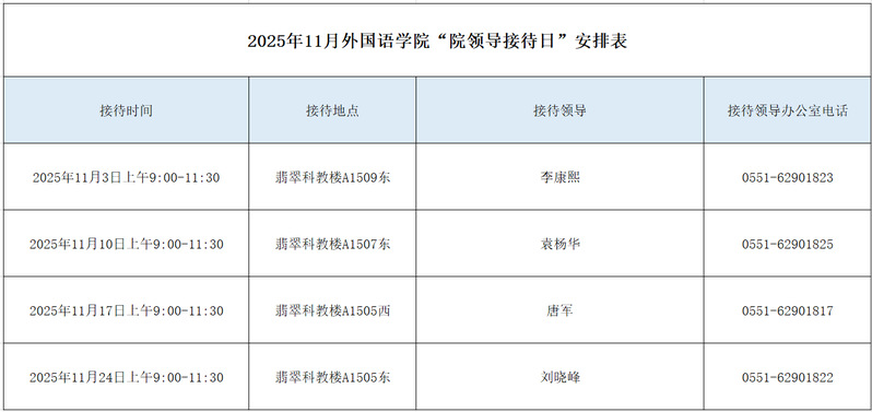 2025年11月williamhill中国官方网站“院领导接待日”安排表