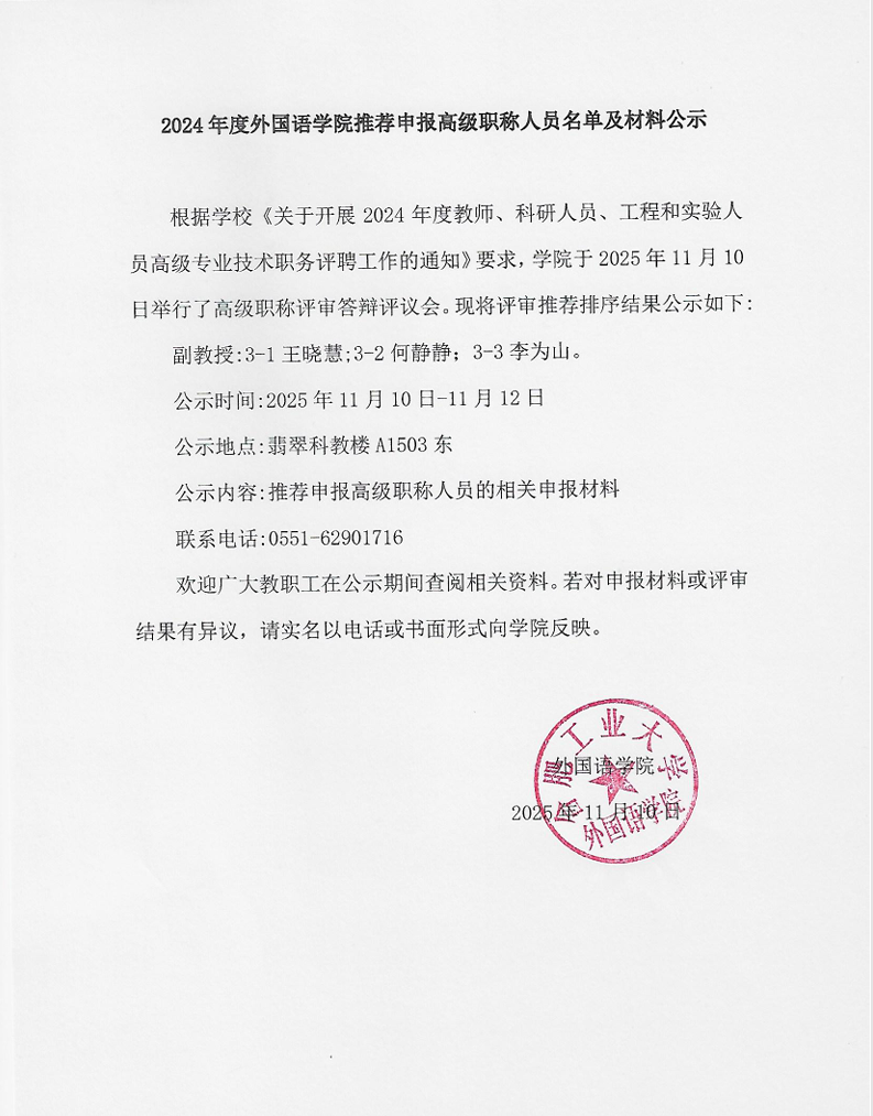 2024年度williamhill中国官方网站推荐申报高级职称人员名单及材料公示