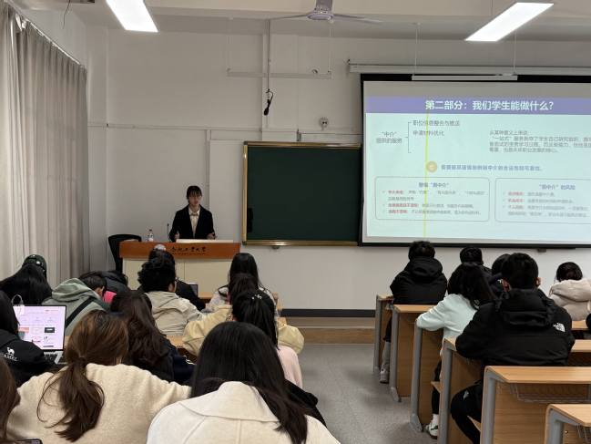 袁杨华系统梳理了国际组织实习申请的全流程支持体系。首先介绍了国际组织的定义与分类,继而重点推荐了以学校官方项目和国家留学基金委资助为主的安全可靠申请渠道,提醒学生主动关注国家留学网、目标组织官网、学校招生与就业处与国际交流合作处网站等官方网站。同时学校层面提供的“新青年”项目、远程实习等资源,与国家层面的资助政策、联合国宣讲活动互为补充,共同构成多层次支持网络,她鼓励学生养成主动搜集信息的习惯,精准研读要求,积极尝试申请。