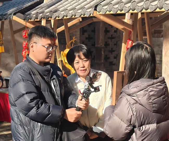 第二阶段,杨雨洁和沈奕昂现场演唱中文歌曲《暖暖》,轻松温暖的旋律拉近了两校师生之间的距离,现场气氛活跃热烈。第三阶段,通过与汾城当地手艺人连线,向印尼师生展示花馍、月饼制作,及木版印刷、剪纸、翻花等传统技艺。精巧生动的非遗艺术令现场观众连连赞叹。