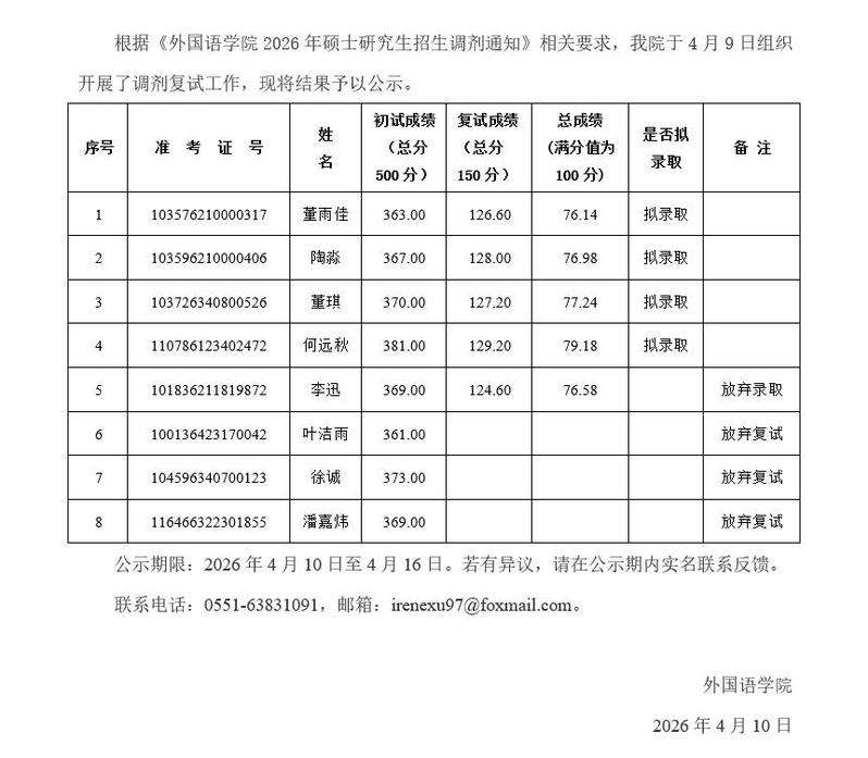 williamhill中国官方网站2026年硕士研究生招生考试调剂复试结果公示
